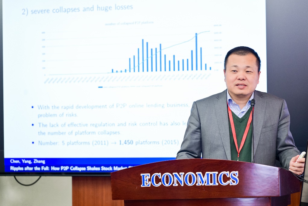 张学勇教授的演讲题目是“Ripples after the Fall: How P2P Collapse Shakes Stock Market Risk Preferences”,他阐述了以“P2P”为代表的互联网金融以其回报率高等特点,在中国经历了大规模的快速发展,但由于监管难、风险高等问题,“P2P”带来了众多负面事件,对社会产生了很大影响。该研究创新地结合数据进行实证分析之后发现,“P2P”负面事件显著地提高了当地投资者的风险厌恶程度,该变化可以被投资者情绪的恶化解释,但无法被认知能力和财富水平解释。此外,投资者投资行为选择会变得偏保守——对新股票、非当地股票的购买意愿下降,更倾向于卖掉高风险股票。事件对经验不足的投资者和男性投资者的影响更明显,且能够持续大约10个交易日。