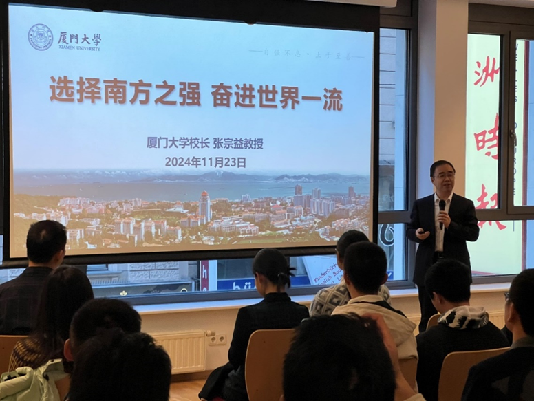 11月23日,代表团一行抵达维也纳,在当地举办厦门大学海外青年学者交流会,与60余位参会代表进行面对面交流,探讨学术前沿并介绍学校发展情况和相关政策。