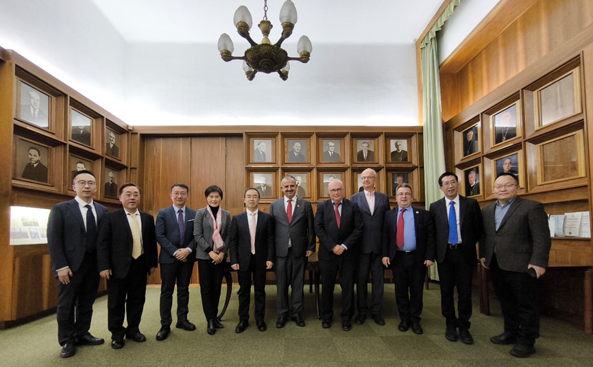 11月22日,代表团访问了布达佩斯技术与经济大学,与校长哈桑·查拉夫(Hassan Charaf)、分管科研与创新事务的副校长雅诺斯·莱文多夫斯基(Janos Levendovszky)、分管国际事务的副校长安德拉斯·内梅斯拉基(András Nemeslaki)及相关学科代表进行交流,探讨了双方在学术交流、师生互访方面的合作意向。两校校长共同签署了合作备忘录。