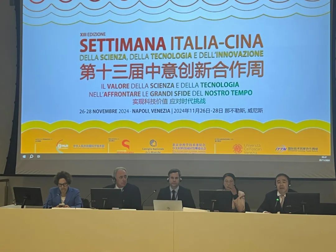 11月28日,代表团还参加第十三届中意创新合作周。本届合作周以“实现科技价值,应对时代挑战”为主题,设那不勒斯主会场和威尼斯分会场。张宗益校长在威尼斯分会场开幕式上致辞。他期盼两国在高等教育领域建立更紧密的联系,开展更大范围、更深层次的合作,为中意友好合作注入新动能。