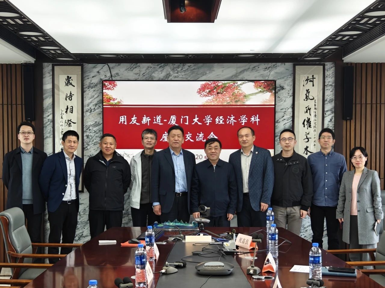 与会人员回顾了厦大经济学科和用友集团二十年来的长期友好合作关系,以及最近在数字经济专业建设上的合作,分别就学科建设、教材编写、案例编撰、实验室建设、AI赋能等未来合作方向进行了热烈的讨论,并决定开展全方位的合作,并尽快举办一期数字经济教育论坛,推动各高校不断探索和完善数字经济人才培养体系,为国家输送兼具深厚理论素养与出色实践能力的高端数字经济专业人才,加快数字中国建设,助力中国式现代化发展。