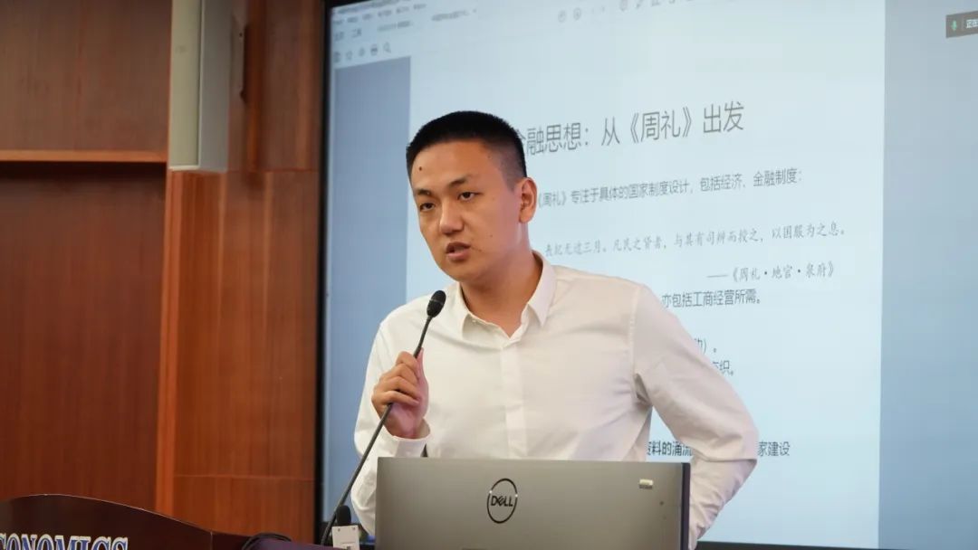 栾笑扬助理教授分享的主题是“中国特色金融文化与中国金融思想史”。栾笑扬从中国古代金融思想出发,追溯了从先秦时期到宋代的金融思想演变。他指出,《周礼》中关于借贷的制度设计体现了早期金融思想的四大特点:国有性、服务生活与生产资料的补充、支持国家建设以及实物与货币经济的交织。