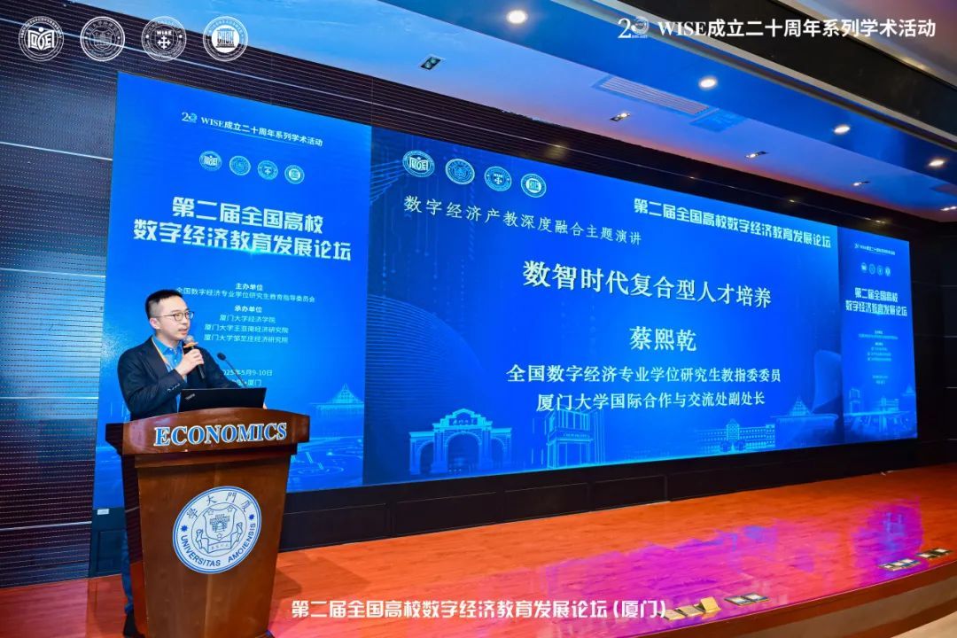 5月10日,第二届全国高校数字经济教育发展论坛在厦门大学举办。论坛由全国数字经济专业学位研究生教育指导委员会(以下简称“全国数字经济教指委”)主办,由厦门大学经济学院、王亚南经济研究院、邹至庄经济研究院承办。论坛聚焦“教育强国目标下的数字经济人才培养:数智化转型与产教深度融合”主题,吸引来自全国近120所高校和研究机构的210余名嘉宾代表参会。该论坛为厦门大学王亚南经济研究院(WISE)建院二十周年系列学术活动之一。