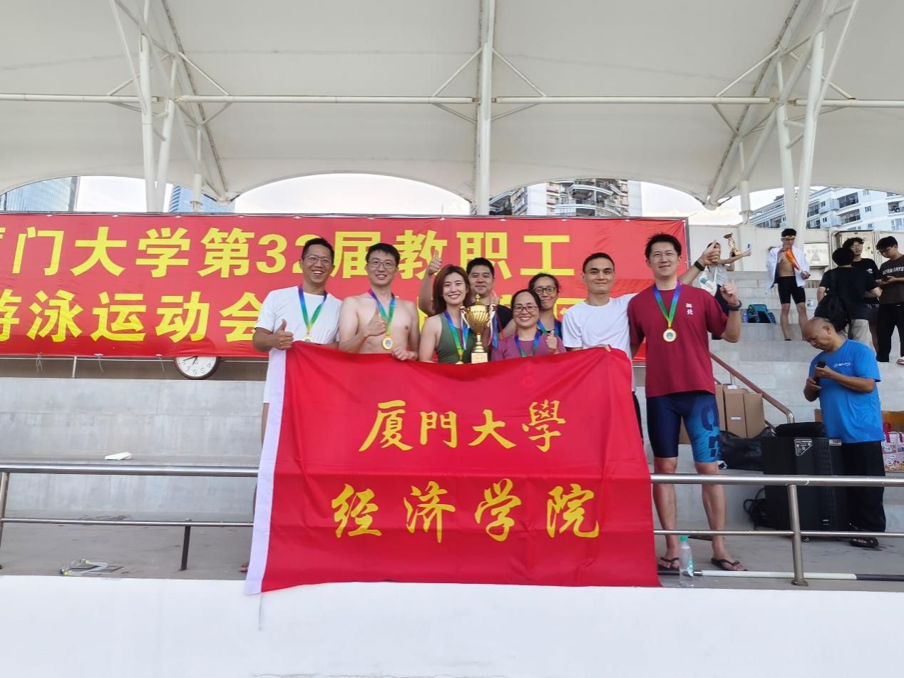 6月23日,厦门大学第32届教工游泳运动会与第33届学生游泳运动会圆满落下帷幕,王清明游泳馆内见证了无数激动人心的时刻。在本届教工游泳比赛中,经济学科教工游泳队以卓越的表现脱颖而出,成功摘得教工团体总分第一名的桂冠,再次彰显了经济学科教工的体育风采与团队精神。