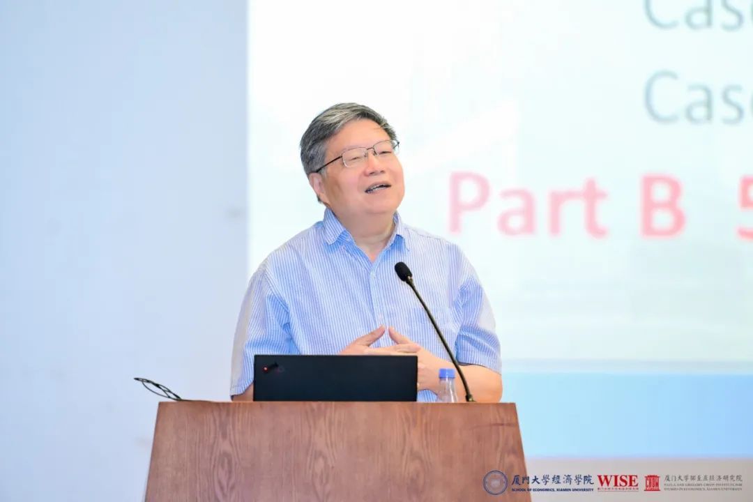 周颖刚教授为同学们带来了“中美金融博弈与币缘战略”主题的讲座,他以美国1929年“斯姆特-霍利关税法”为引子,阐述了美国高关税政策的历史先例,接着分析了20世纪美国“白银法案”对当时中国经济造成的影响。随后,周颖刚教授系统梳理了国际货币体系的演变、近年来金融市场的较大震荡以及战争冲突、政治周期、全球债务等因素对全球经济发展的钳制,接着他对如何优化具有中国特色的货币制度体系提出了思考,并强调厦门大学经济学科会始终如一地为自主培育国际化复合型金融人才和自主金融知识体系构建作出贡献。