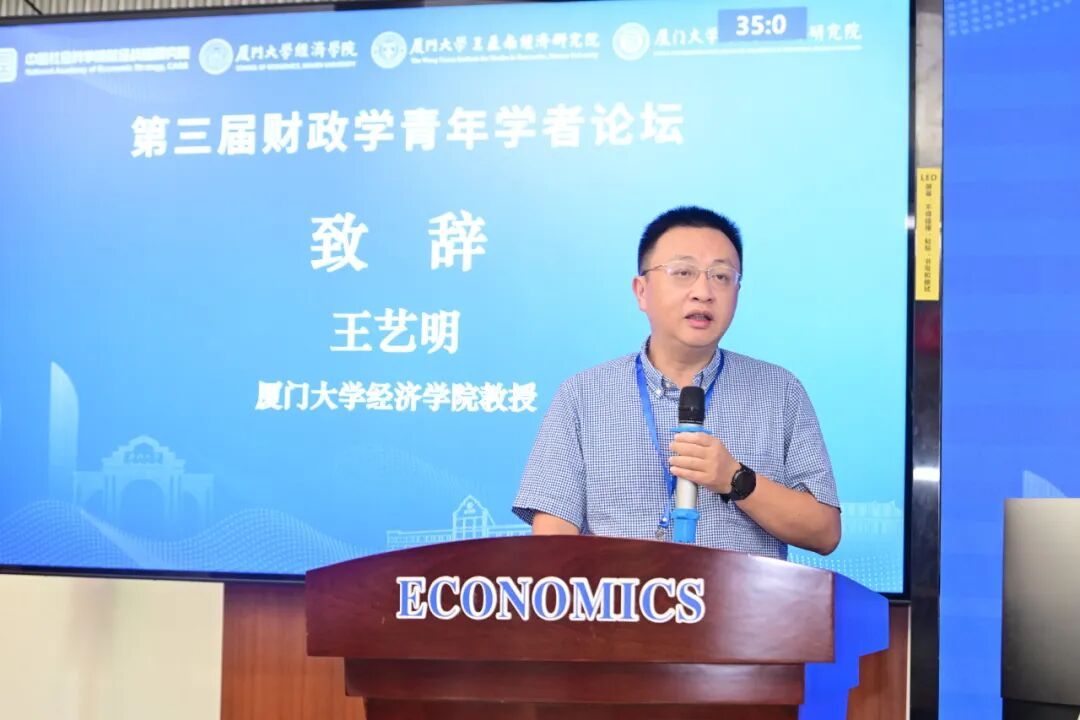 王艺明教授在致辞中代表厦大经济学科对各位嘉宾和青年学者的到来表示热烈欢迎。他提到,财政学研究始终与国家发展同频共振、同向而行,而青年学者作为学术研究的“生力军”,更是财政学科薪火相传、持续发展的根本所在。本届论坛是前两届论坛学术成果的传承和延续,为青年学者搭建了思想碰撞、成果交流的平台,希望专家学者们畅所欲言,为财政学科发展注入新活力。