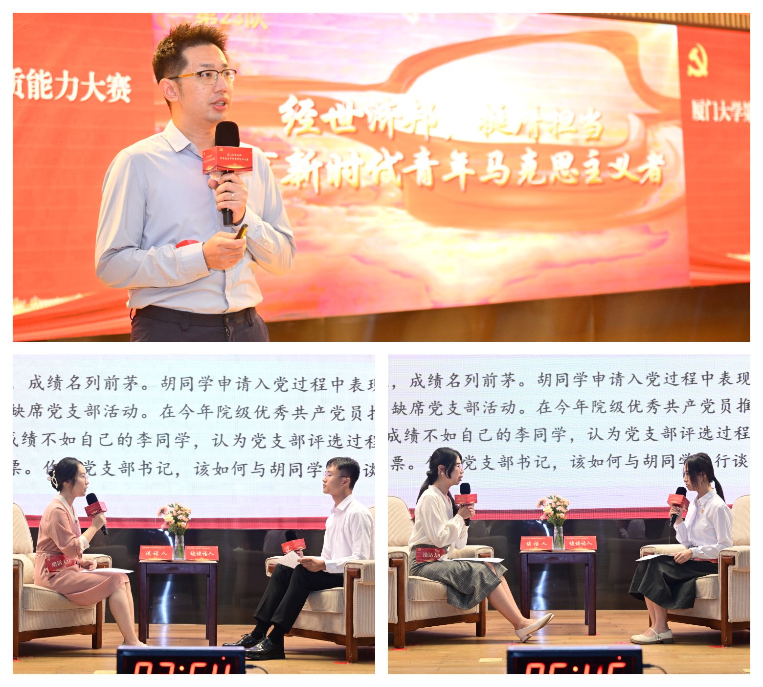 经济学院党委将此次大赛作为锤炼基层党务干部能力的重要抓手,倾注大量精力统筹推进备赛工作。 期间 ,学院党委领导班子成员多次与参赛队员深入交流,结合比赛要求和基层党建实际,为备赛方向、内容设计提供精准指导 。 参赛师生团队在深入钻研党务知识的基础上,将 经济学科 的理论成果、实践案例融入主题党日策划和专题微党课设计中 。在谈心谈话环节, 参赛师生精准研判问题症结,从容应对、高效沟通,展现出 经济学科 基层党务干部的良好素养。 经济学科 师生 还自发 组成啦啦队前往现场为选手加油鼓劲,营造出热烈温暖的支持氛围。