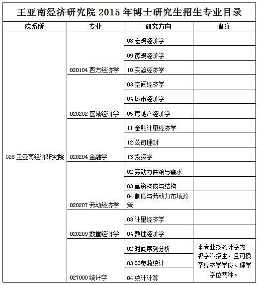 王亚南经济研究院所有2015年博士生招生专业。
