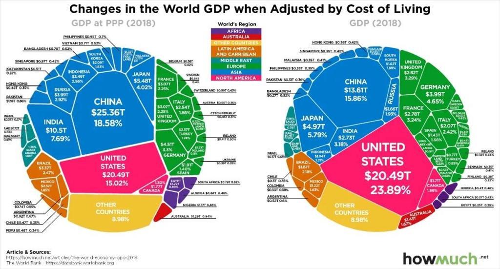中国在全球经济中的地位今非昔比。SARS爆发的2003年,中国经济世界排名跻身前十不久,占全球经济产出只有4.3%。如今,中国经济体量已经跃升至世界第二, 2018年中国占全球经济产出的比例为15.86%,如图14示。2019年中国的占比预计超过16%,对世界经济的贡献率预计达到近30%。
